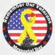 La cinta amarilla y la bandera de Iwo Jima izando con el trasfondo de la bandera de los EE.UU., y los mensajes de "Recuerden a nuestros veteranos" y "Día en memoria" para honrar y recordar a nuestros veteranos que sirvieron para los Estados Unidos.