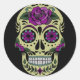 Pegatina Redonda Día de los Muertos con Rosa Púrpura