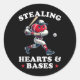 Pegatina Redonda Día de San Valentín Boys Béisbol Jugador Robando C