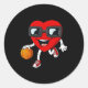Pegatina Redonda Día de San Valentín Corazón Perforando Baloncesto