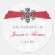 Pegatina Redonda Diamante Snowflake & Red Ribbon Boda de Invierno