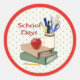 Estilo de campo de vuelta al diseño escolar con esta detallada imagen de libros, manzanas y herramientas de escritura.