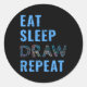 Pegatina Redonda Dibujo Comer Sleep Draw Repetir