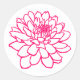 Pegatina Redonda Dibujo de crisantemo - rojo neón sobre blanco
