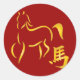 Pegatina Redonda Dibujo de la caligrafía del año del caballo