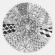 Pegatina Redonda Dibujo de Mandala en blanco y negro
