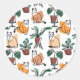 Pegatina Redonda Dibujo en línea de gatos y flores