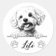 Pegatina Redonda Dibujo a Mano de Perro Bichon Frise Personalizado