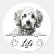Pegatina Redonda Dibujo Personalizado a Mano de Perro Goldendoodle