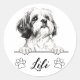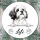 Pegatina Redonda Dibujo Personalizado a Mano de Perro Shih Tzu