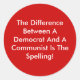 Pegatina Redonda Diferencia Entre Un Demócrata Y Un Comunista