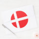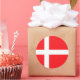 Bandera nacional de Dinamarca (Dannebrog). La bandera muestra una cruz blanca escandinava en un campo rojo. La cruz representa el cristianismo y otros países escandinavos nórdicos de Suecia, Noruega, Finlandia, Islandia, las Islas Feroe y también las islas Shetland y Orkney británicas adoptaron diseños similares. El diseño se grabó por primera vez a finales del siglo XIV, pero la leyenda cuenta que la bandera data de la Batalla de Lyndanisse en 1219.
