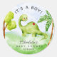 Pegatina Redonda Dino Delight Baby Shower es un chico clásico