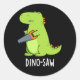 Dino-saw Funny Dinosaur Tool Pun presenta un lindo dinosaurio sosteniendo una sierra. Perfecto regalo de juego de palabras para la familia y amigos que aman los lindos juegos de dinosaurios.