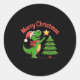 Pegatina Redonda Dinosaur Christmas Merry Christmas T-rex Decoratin