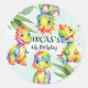 Pegatina Redonda Dinosaurio arcoiris mágico lindo Fiesta de cumplea