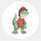 Pegatina Redonda Dinosaurio como bombero con casco de bomberos