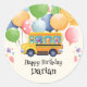 Pegatina Redonda Dinosaurio divertido de vuelta a la escuela Autobú