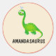 Pegatina Redonda Dinosaurio personalizado con nombre de niño