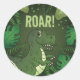Pegatina Redonda Dinosaurio T-rex Personalizado Cuta Verde Con Text