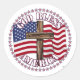 Pegatina Redonda Dios bendiga a Estados Unidos y cruce con la bande