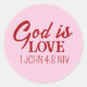 Este hermoso y significativo pegatina presenta el poderoso versículo de la Biblia de 1 Juan 4:8.