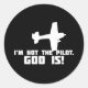 Este diseño cristiano presenta la silueta de un avión y dice "No soy el piloto. Dios lo es". Personalizar esto con sus propias imágenes o texto haciendo clic en el botón "Personalizar".