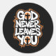 Dios nunca te deja - Pegatina de redondeo clásico negro