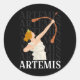 Pegatina Redonda Diosa Artemis De La Caza Y El Mito Griego De La Lu