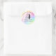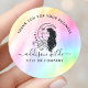 Diosa de la Luna Mística Celestial Arcoíris Pegatina Redonda Clásica. Este diseño empresarial presenta un fondo de arcoíris acentuado con una diosa lunar celestial con cabello largo y fluido. Este diseño brillante y femenino es perfecto para cualquier mujer profesional que busque una identidad corporativa artística y divertida. ¡Perfecto para planificadores de eventos, artistas de maquillaje, estilistas de cabello, dueños de salones, médiums psíquicos, instructores de yoga, sanadores y más!