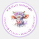 Pegatina Redonda Dirección de Baby Shower Floral Vaca Púrpura