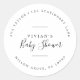 Estos minimalistas pegatinas circulares de vuelta con ducha de bebé son perfectos para un simple sobre de invitación a la ducha de bebé. El diseño presenta una tipografía clásica en blanco y negro, acompañada de un tipo de letra rústico-elegante con letras a mano.