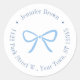 Pegatina Redonda Dirección de devolución de Baby Shower de Blue Bow