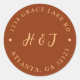 Esta pegatina redonda clásica y de moda de Monograma Boho de color Naranja Quemado es la adición perfecta para cualquier suite de invitaciones de boda modernas y elegantes. El diseño minimalista presenta un monograma en un estilo de tipografía de letra script moderna, añadiendo un toque de sofisticación a sus invitaciones. El diseño simple pero chic de la pegatina la convierte en una excelente opción para una variedad de temas de boda, particularmente para una boda de otoño o rústica. El color naranja quemado añade calidez y profundidad a la pegatina, perfecto para complementar la paleta de colores de su boda.