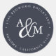 Pegatina Redonda Dirección de devolución de Boda de monograma blanc