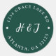 Pegatina Redonda Dirección de devolución de Boda verde esmeralda