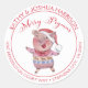 Cute Navidades cerdo en suéter de vacaciones y sombrero de santa - Merry Pigmas en escritura caligráfica ornamental. Personaliza con tu propio nombre y dirección.
