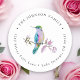 Una hermosa y elegante etiqueta redonda de dirección de devolución con un colibrí de acuarela suave pintado a mano. ¡Personalízala y hazla tuya!