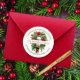 Hermosos Navidades vacaciones acuarela buzón floral ramo en rojo y blanco con vegetación, le dan a este diseño botánico de sello para sobres de dirección un aspecto de elegancia clásica sofisticada que seguro impresionará a sus destinatarios. Simplemente agrega tus nombres y dirección de retorno.