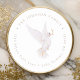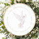 Una hermosa y elegante etiqueta redonda de dirección de devolución que presenta una paloma blanca de la paz suave pintada a mano en acuarela que sostiene una rama de olivo. ¡Personalízala y hazla tuya!