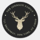 Agregue un toque de elegancia a su correo con esta Etiqueta redonda clásica de dirección de devolución de Navidad negra Reno dorado de lujo. Con un reno dorado brillante en un fondo negro rico, es perfecto para tarjetas de vacaciones, regalos y sobres.