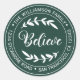 Etiqueta adhesiva de dirección de devolución redonda de Navidad familiar con su nombre y dirección en tipografía blanca con estilo que presenta el texto Cree en tipografía manuscrita con un toque elegante de follaje rústico sobre un fondo verde oscuro. Simplemente agregue su nombre y dirección. Diseñado exclusivamente para usted por Happy Dolphin Studio. Si necesita ayuda o productos coincidentes, por favor contáctenos a través del chat de nuestra tienda. Felices fiestas y Feliz Navidad!