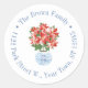 Este diseño pegatina flexible presenta una planta festiva de poinsettia roja en un frasco de jengibre azul y blanco con borde de texto circular. Se muestra aquí para una etiqueta de dirección de retorno, pero todos los campos de texto son flexibles para sus necesidades, por ejemplo, podría ser un pegatina de agradecimiento.