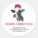 Pegatinas de vacaciones con temática de granjas particulares con una vaca acuarela con sombrero de santa, el dicho "feliz navidad", el nombre de tu familia y la dirección de regreso.