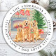 Envíe saludos navideños esta temporada navideña con estos perros recuperadores dorados en un diseño acuarela. Las etiquetas de esta dirección vacacional de recuperación dorada incluyen dos crías de recuperación dorada, una escena de chimenea con árboles de vacaciones, medias y regalos. Personaliza con el nombre y la dirección de la familia. Estas etiquetas de direcciones de los recuperadores de oro serán favoritas entre los amantes de los recuperadores de oro, los amantes de los perros y los amantes de los animales. Visite nuestra colección para ver tarjetas de navidades de recuperación dorada, decoración y regalos. DERECHOS RESERVADOS © 2020 Judy Burrows, Black Dog Art - Todos los derechos reservados. Navidades de Golden Retriever Dog Return Address Classic Round Pegatina