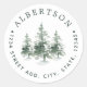 pegatinas/etiquetas de direcciones circulares diseñadas por el personalizado con diseño de pinos acuarelas. Personaliza con el nombre y la dirección de la familia. Perfecto para decorar sobres de vacaciones, tarjetas, regalos de bricolaje y más!