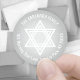 Añada las vacaciones perfectas, la invitación o el toque de acabado de las tarjetas de agradecimiento con estas elegantes etiquetas / sellos para sobres de la dirección de retorno en blanco y falso Relieve metalizado plateado. Todo el texto se puede personalizar fácilmente con el nombre y la dirección. El diseño presenta una elegante estrella geométrica de moda de David con una tipografía moderna y sencilla en círculo. Perfecto para muchas festividades o ocasiones judías, como Hanukkah, un boda, un murciélago o el bar mitzvah o un funeral.