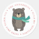 Los pegatinas de la dirección de regreso de las vacas vacacionales con un lindo oso personalizado vestido con una bufanda rodeada por el nombre de su familia y la dirección de regreso. Las etiquetas de dirección de retorno de oso son perfectas para los sellos para sobres.