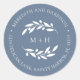 Pegatina Redonda Dirección de devolución del Boda azul turbio monog