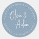 Pegatina Redonda Dirección de devolución del Boda manuscrito azul t